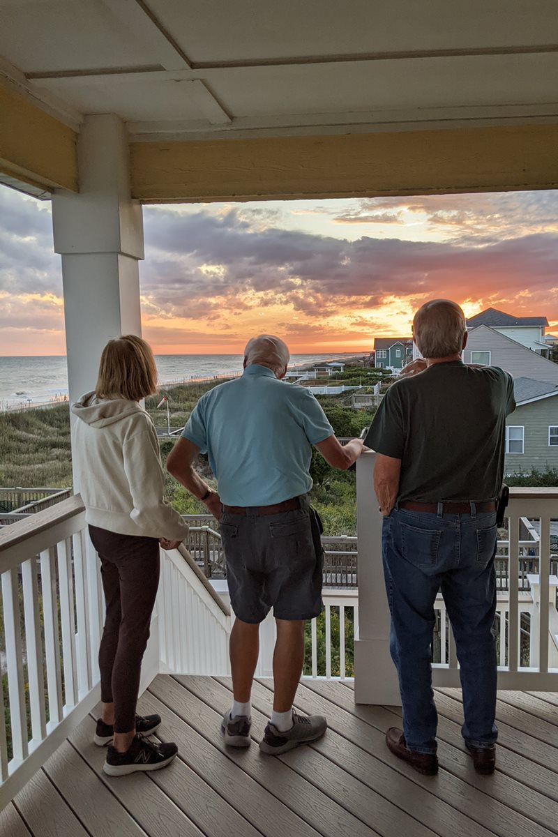 During the period of October 3-10, 2025, Jim, with his wife Kelly and son Ford, generously hosted four of his Beta Pi brothers at his six-bedroom beachfront house in Emerald Isle, North Carolina. Visiting Jim were Dave DelDotto ’67, John Spittle ’66 and his wife Susie, Morty Cohen ’65 and his wife Della, and Tim Sotos ’67.